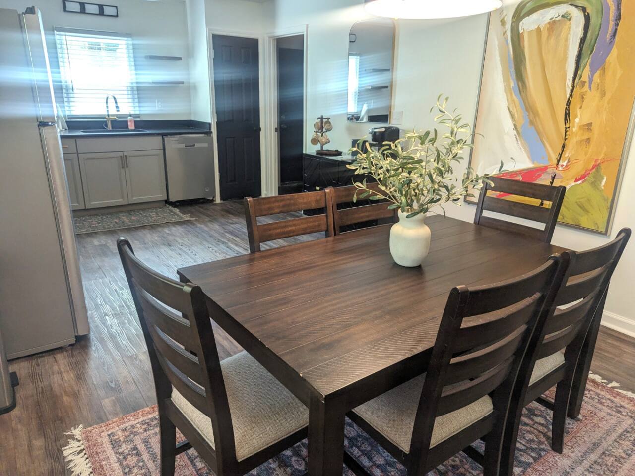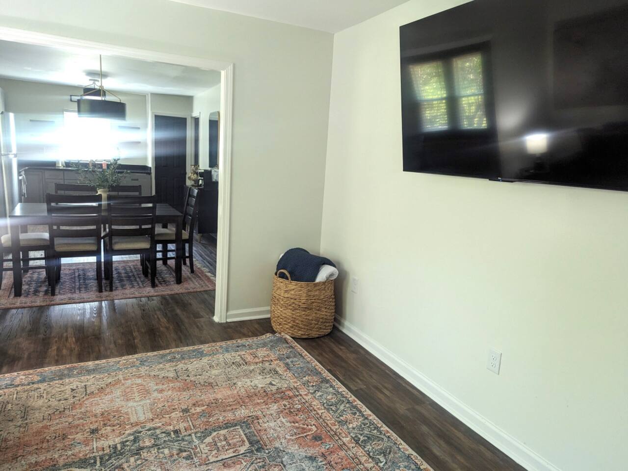 The cottage is quaint and adorable and completely remodeled. The main room has a large tv, with a sleeper sofa and lounge chair. There are a variety of board games if you would like to relax and spend the night in with the family. There is a 6 person dining area, and a spacious kitchen. The kitchen is completely remodeled with new cabinets, appliance and granite counter tops. Enjoy some complimentary snacks by our coffee bar. The kitchen is full stocked with everything you need to cook a nice meal (besides the food). Each of the two bedrooms has a queen sleeper with a tv, dresser and a closet. The beds are medium firmness, which most guest compliment the beds. In between the two beds is a full bathroom shower/tub combo. We supply shampoos/conditioners/soap, as well as a blow dryer. We also have a laundry room with complimentary laundry soap, and an ironing board and iron. ***Please note- with hurricane Helene that just destroyed our community, there are still fallen trees in the yard and fences that need to be rebuilt. It's honestly just a waiting game for contractors to finish homes before yards, etc. Everything with the home is perfectly fine, but the yard is still affected as we rebuild. Please be aware of this with your pet. *****