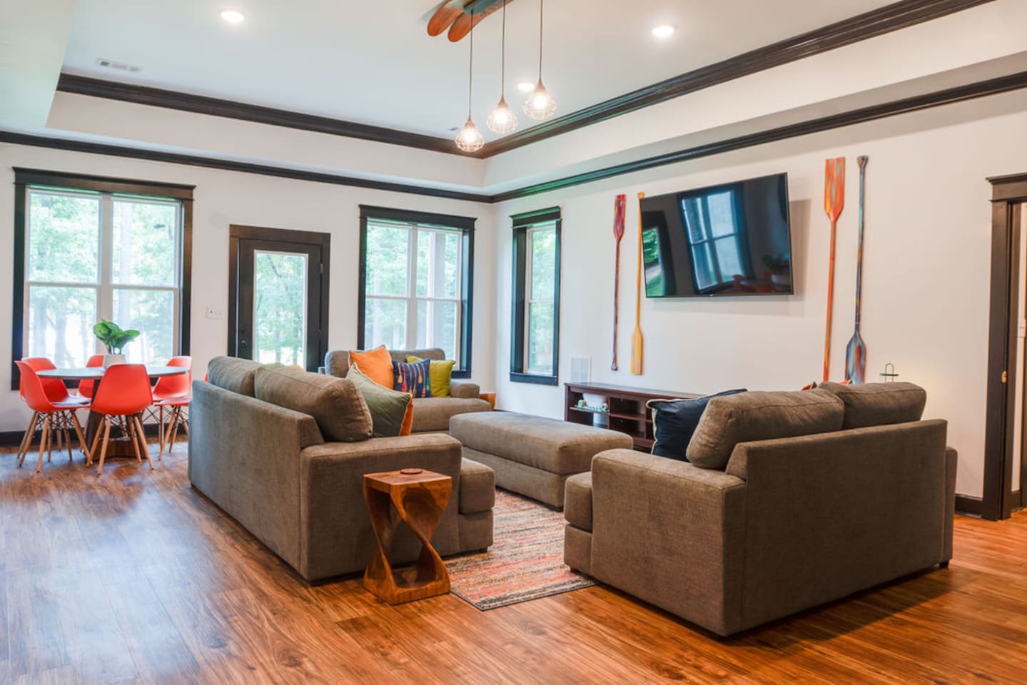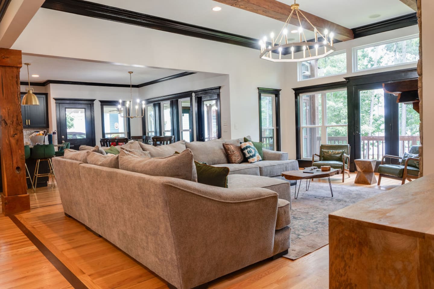 Want to go to the lake, but don't want to rough it. Now you can have the best of both world with this luxury house on the lake (The large brown house only). Truly a unique find on Clarks Hill Lake with he sheer size and elegance. Feel comfortable and have plenty of space with 11 beds and 6.5 bahts, there is PLENTY of room to space out. The house has much to do. Feel free to bring your boat and store it under the dock. There is lots of space with covered parking on the property, so don't worry about your trailer. Lots of things for kids to do, they can play or kayak in the cove at the lake, disc golf, basketball, ping pong, or the amazing game room! There are plenty of board games throughout the home for those fun nights playing games as a family. -This house has 6 bedrooms, each with a designated/private bath. *Main level- Master bath with a King bed, bathroom with a tub and separate shower. *Upstairs - Bunk room with 3 queen beds. Bathroom is across the hall with tub/shower combo - Queen bed with twin bed window sleeper. Ensuite bathroom with tub/shower combo. - Queen bed with full bed window sleeper. Ensuite bathroom with tub/shower combo. *Basement - Large room with 2 queen beds. Shower only. - Queen bed with ensuite bathroom tub/shower combo. All rooms have private tv's. Basement Features and arcade room with additional living area and a kitchenette. *** This house is on a large property on the Clarks Hill Lake, It is 1 of 2 vacation homes on the property. The fire pit, basketball court, and dock are common areas. Please be courteous of other guests. (If you would like to rent both homes, reach out, or there is a listing for that).