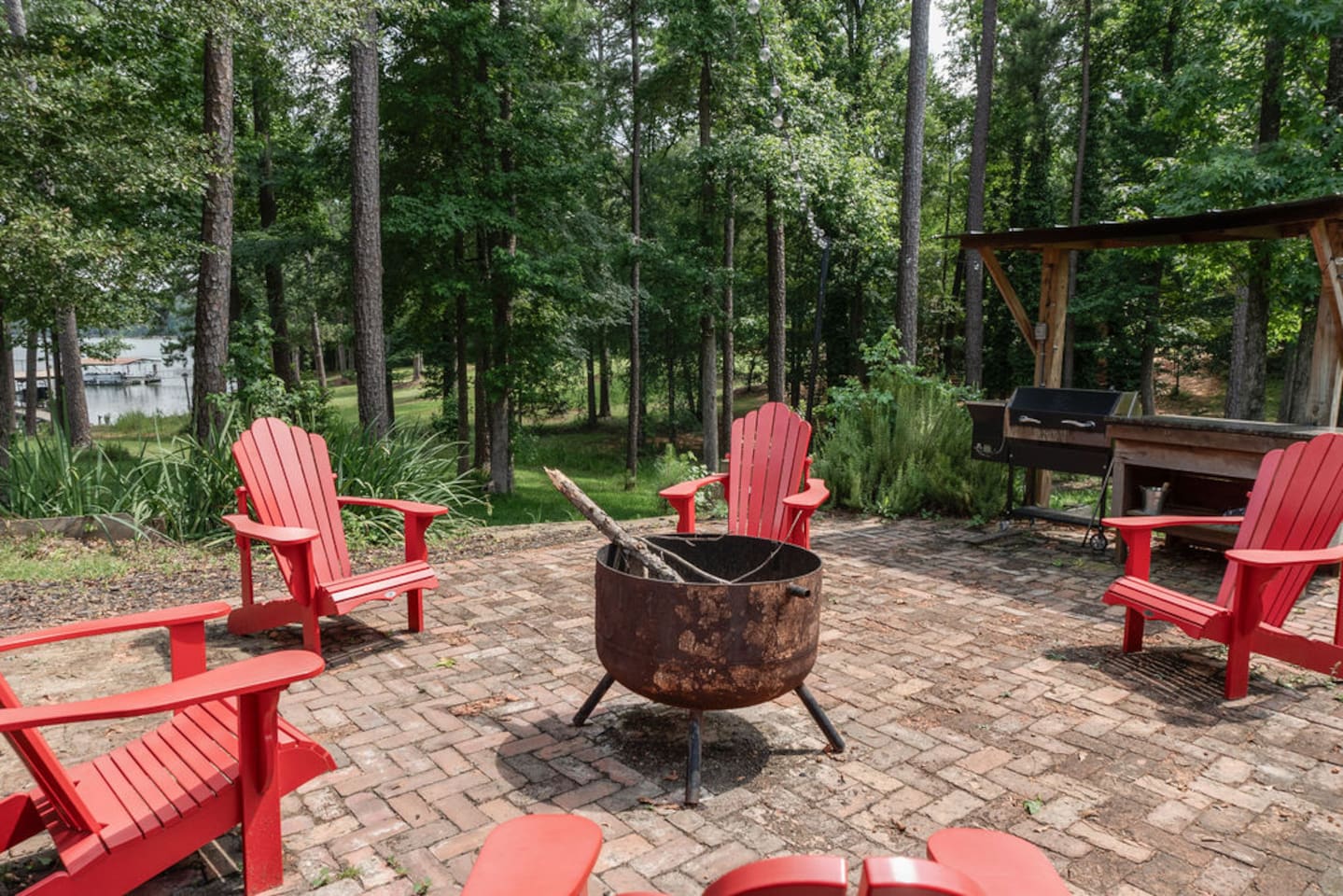 Guests have access to the entire house. The home is the Larger brown house in the listing. Parking is directly besides the home under the carport. Firepit, grill, dock, and basketball court are shared between both homes, and other guests may be using. Please don't park in front of the garage.